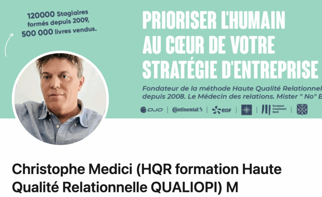 Vous avez suivi une conférence, une formation ou une intervention de Christophe Médici ? Votre témoignage aide la communauté HQR® à s’agrandir. A vous de jouer en laissant un commentaire.
